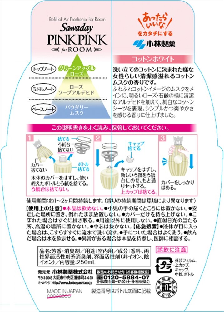 【日本直邮】小林制药/Kobayashi Sawaday PINKPINK皇冠爽花蕾空气芳香剂250ml 纯白棉絮