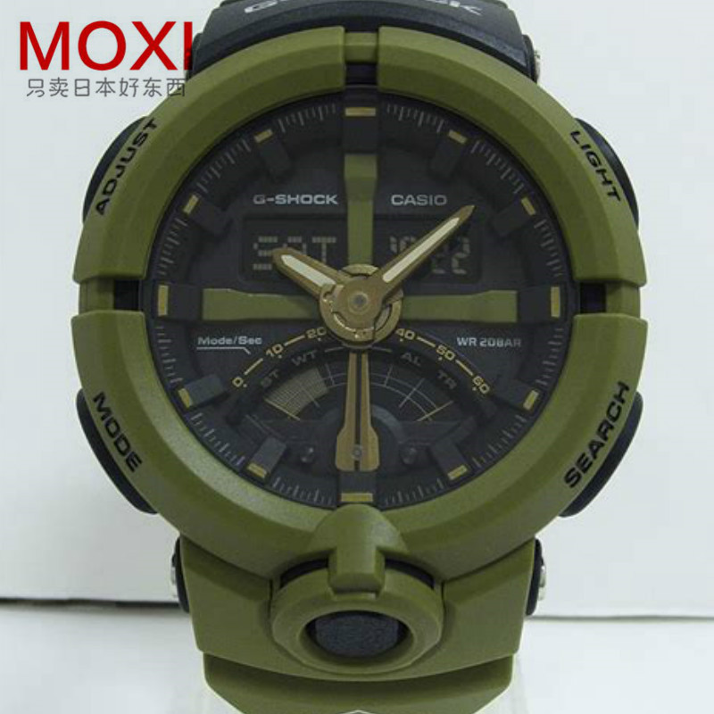 - 【EMS包邮】卡西欧/CASIO G-SHOCK时尚军绿色大表盘石英运动男表GA-500P-3AJF
